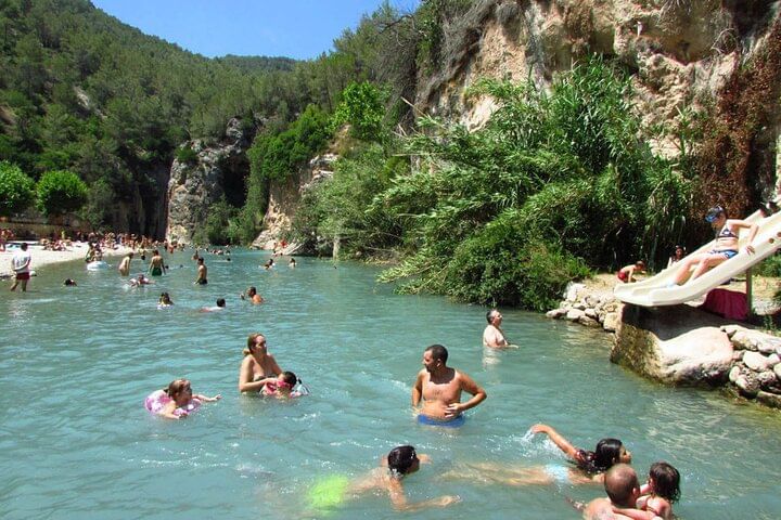 Realizaremos un tour a una de las zonas con mayor belleza natural de la Comunidad Valenciana, está en la localidad de Montanejos (el transporte público es casi nulo y solo se accede en transporte privado), donde hay unos baños de aguas termales naturales donde podrá nadar y bañarse. Conoceremos diferentes cataratas que solo se puede ver yendo a través del río.